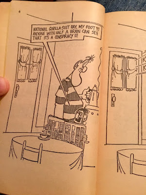 In this story, Fester Bestertester keeps complaining that National Gorilla Suit Day is nothing more than a conspiracy created by the owners of gorilla suit companies to make everyone buy more gorilla suits.